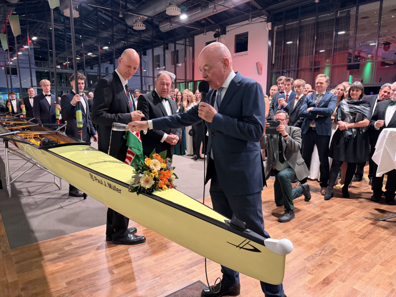 Der Vorsitzende Sport, Martin Hasse, bat dann die Neuköllner Erfolgsruderinnen und Ruderer des Jahres 2025 nach vorn und überreichte Ewa Grzimek, Malin von der Aue, Xavier Seidel und Edvin Novak unter dem Beifall der Ballgäste jeweils einen Blumenstrauß.