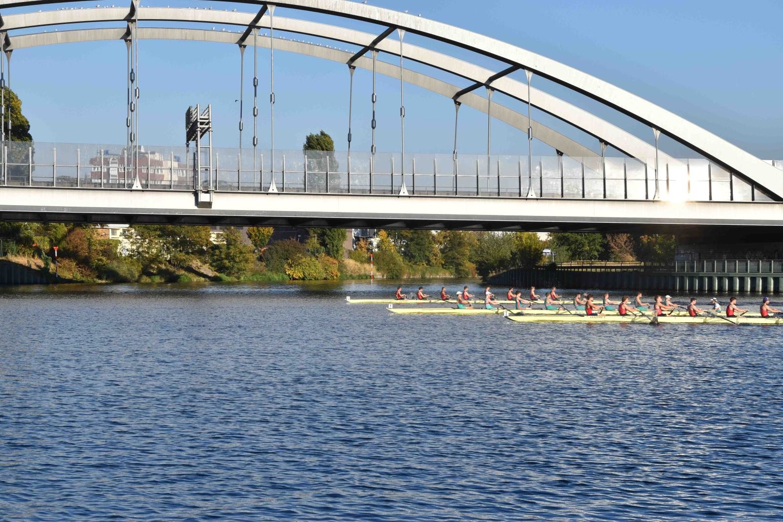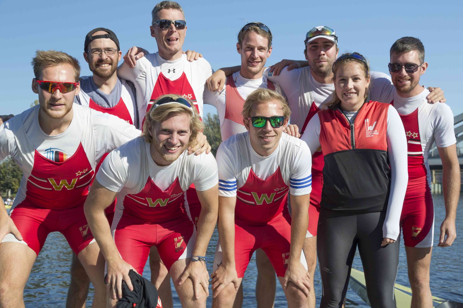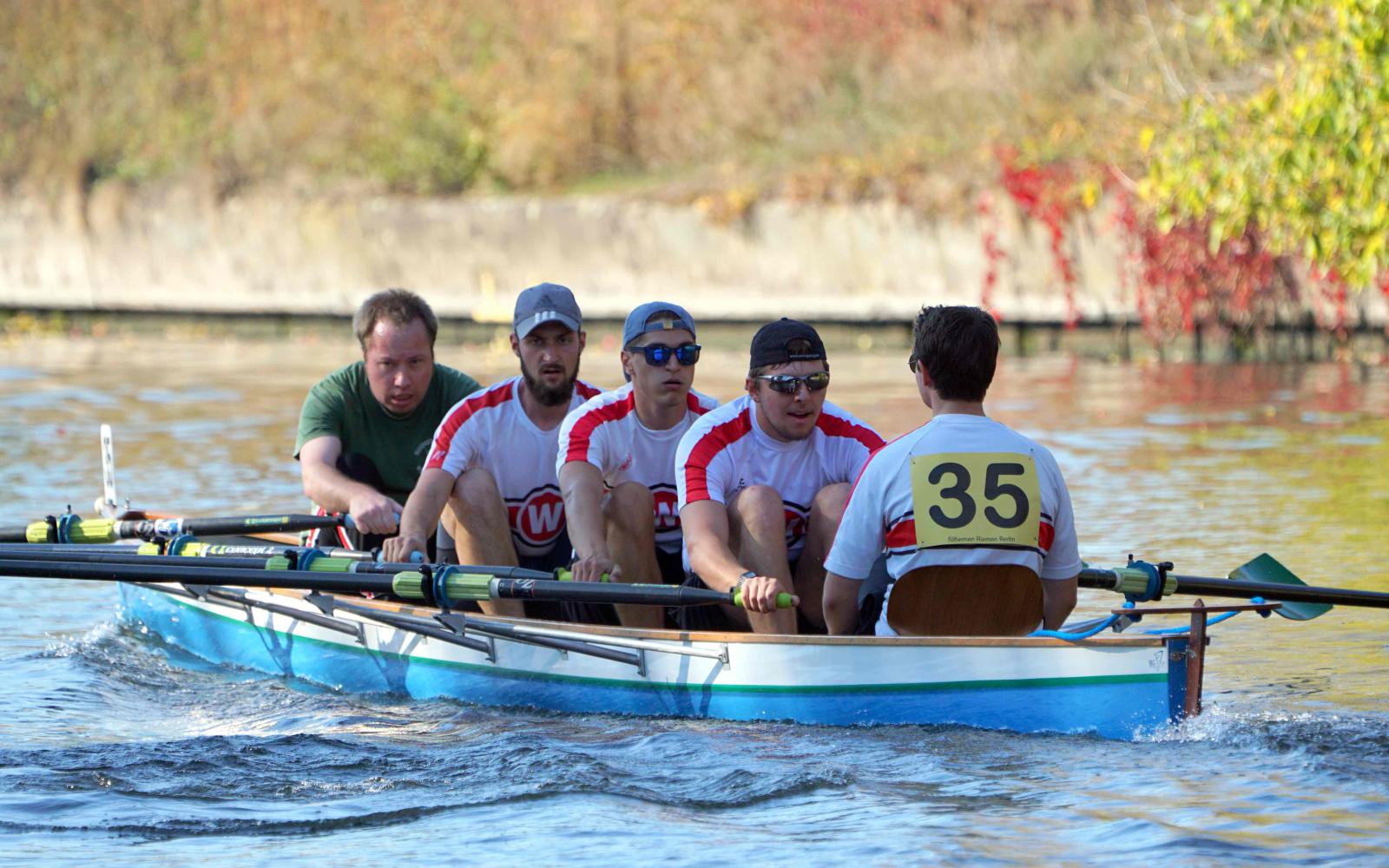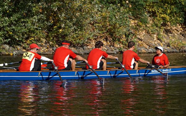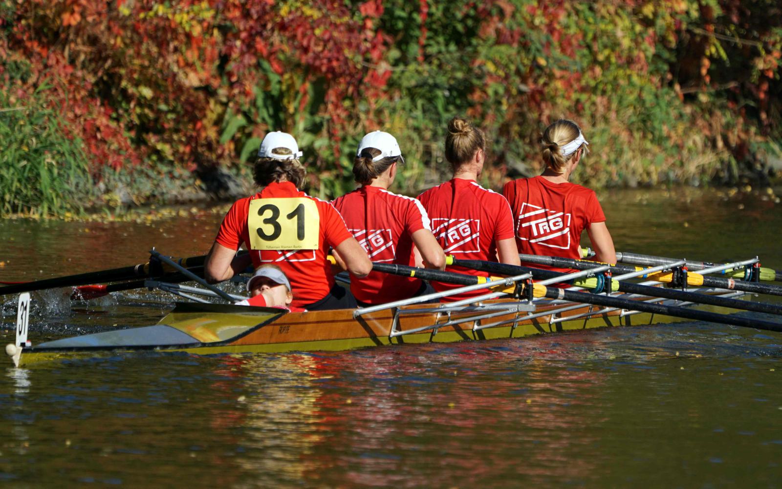 Mit warm anziehen war auch am Samstag für die Ruderer nix. Bei supersonnigem Herbstwetter ging es zunächst um den Sieg auf der langen klassischen Distanz über 6,3 km. Dabei ging es von der Spreeinsel der Jugend entlang an der ehemaligen Berliner Mauer bis zum Britzer Hafen in Neukölln. An den Start gingen 22 Achtermannschaften, 7 Frauen Doppelvierer und 6 Gigdoppelvierer in der Club- und Inklussionsklasse. Dabei tankten Ruderer und Zuschauer zwischen Treptow und Neukölln mit viel nackter Haut die vermeintlich letzten Sonnenstrahlen im Oktober.