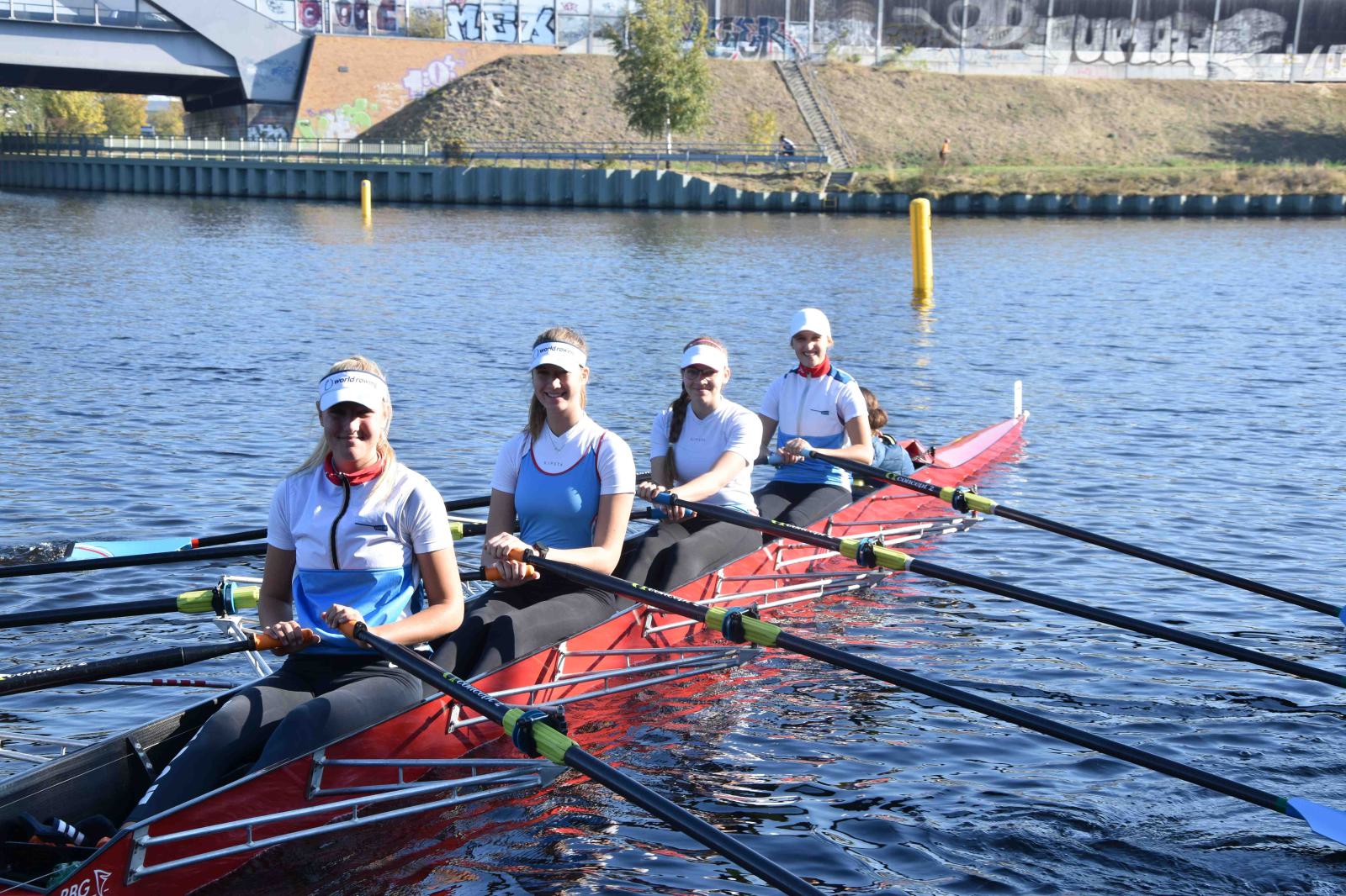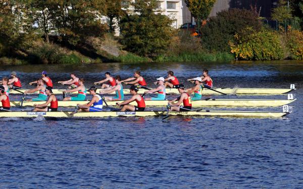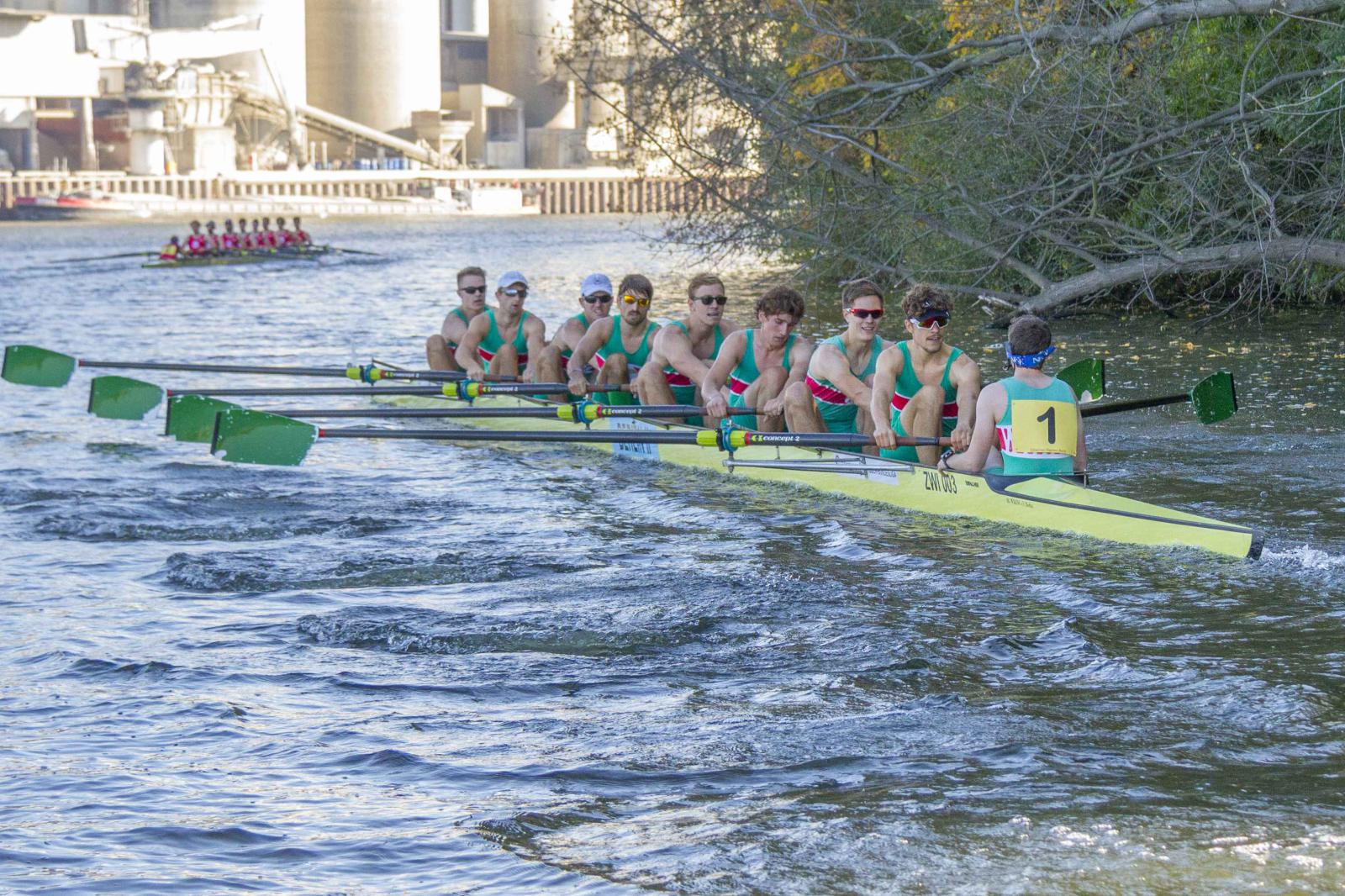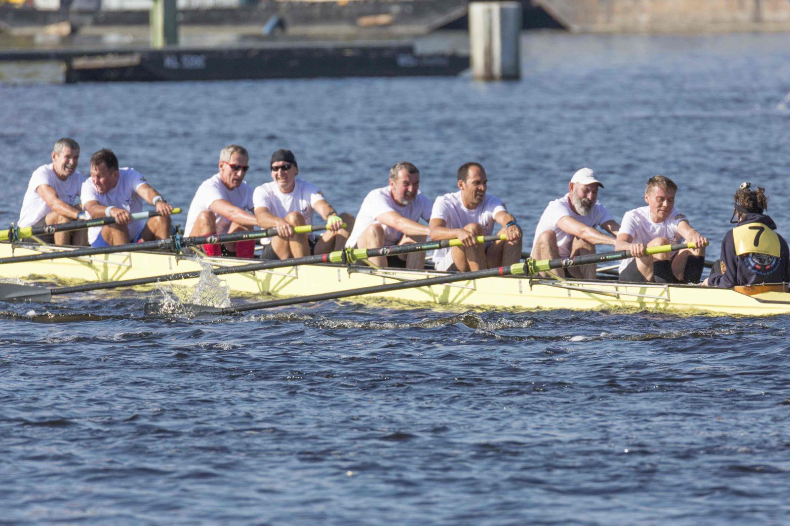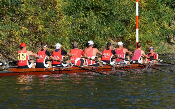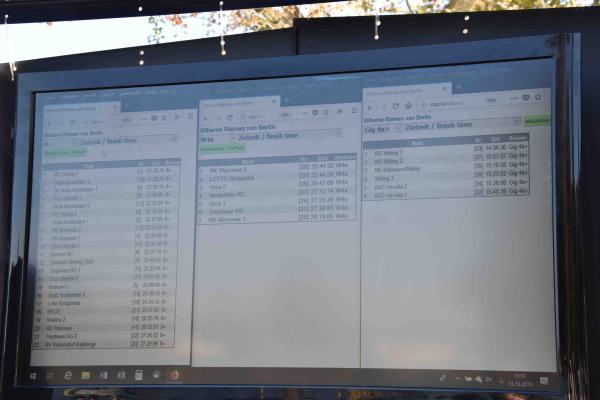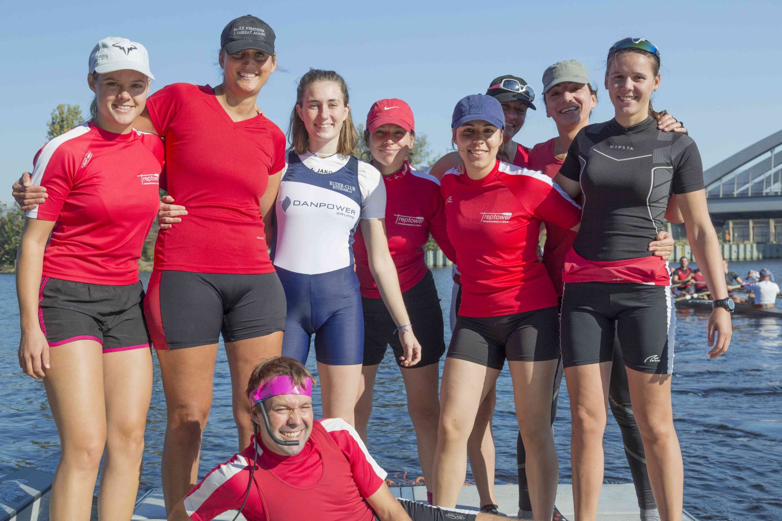 Mit warm anziehen war auch am Samstag für die Ruderer nix. Bei supersonnigem Herbstwetter ging es zunächst um den Sieg auf der langen klassischen Distanz über 6,3 km. Dabei ging es von der Spreeinsel der Jugend entlang an der ehemaligen Berliner Mauer bis zum Britzer Hafen in Neukölln. An den Start gingen 22 Achtermannschaften, 7 Frauen Doppelvierer und 6 Gigdoppelvierer in der Club- und Inklussionsklasse. Dabei tankten Ruderer und Zuschauer zwischen Treptow und Neukölln mit viel nackter Haut die vermeintlich letzten Sonnenstrahlen im Oktober.