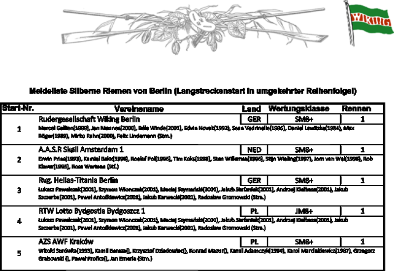 - 09.09.2021 - Anmeldung Silberne Riemen 2022 / Registration Silver Oars 2022