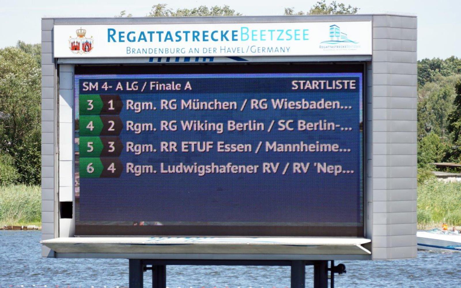 Am zweiten Tag der Großbootmeisterschaften in Brandenburg auf dem Beetzsee war der WIKING noch im Männerachter vertreten. Die Kombination des leichten und schweren Vierers vom Vortag, ergänzt mit Frederik Rahders und Luisa Simon (Neuköllner Ruderclub Berlin e.V. - NRCB) an den Steuerseilen, verpasste im Finale die Bronzemedaille um eine knappe halbe Länge.