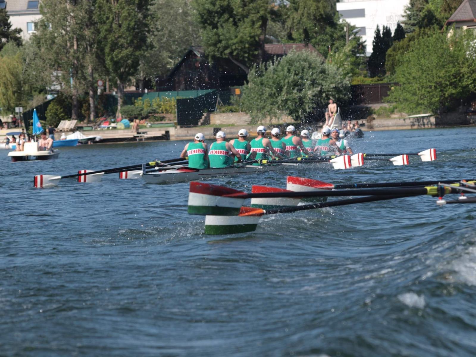 Als einziges Boot aus Deutschland ging es für uns um 15:40 Uhr über die 4,8 km lange Strecke an den Start. Dem guten Wetter geschuldet, waren viele Freizeitboot auf der Strecke rund um die Insel „Gänsehäufel“ unterwegs, wodurch der erste Start abgebrochen wurde. Dies war für uns ein Riesenvorteil, da der zweite Start bedeutend besser lief als der erste. Nach den ersten 1500 Metern begann der erste 350m Sprint. Welchen wir mit Bravour meisterten. Aus dem Augenwinkel sahen wir jedoch, wie unsere Sportskameraden weniger Glück hatten und leider mit einem der bereits erwähnten Ausflugsschiffe kollidierten. Es folgte eine aufregende Wende, wo wir anders als geplant, auf backbord stoppen mussten. Was sich jedoch unter der großartigen Steuerleistung des Kameraden Marcel Noack als keine große Herausforderung darstellte. Es folgte wieder ein Sprint über 250m und wie ich mir von Leuten aus dem Publikum hab sagen lassen ein „Großartiger Endspurt“.