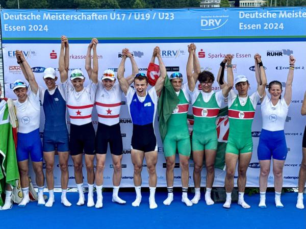 Nach der überaus erfolgreichen Juniorenregatta in Hamburg startete am 19.06. die DJM 2024 auf dem Baldeneysee in Essen. Die Vorläufe und Bahnverteilungsrennen waren noch überschattet von Krankheit und etwas unbefriedigenden Ergebnissen. Am Ende konnte sich jedoch jedes Boot für ein Finale qualifizieren, und es gab keine Ausscheidungen.