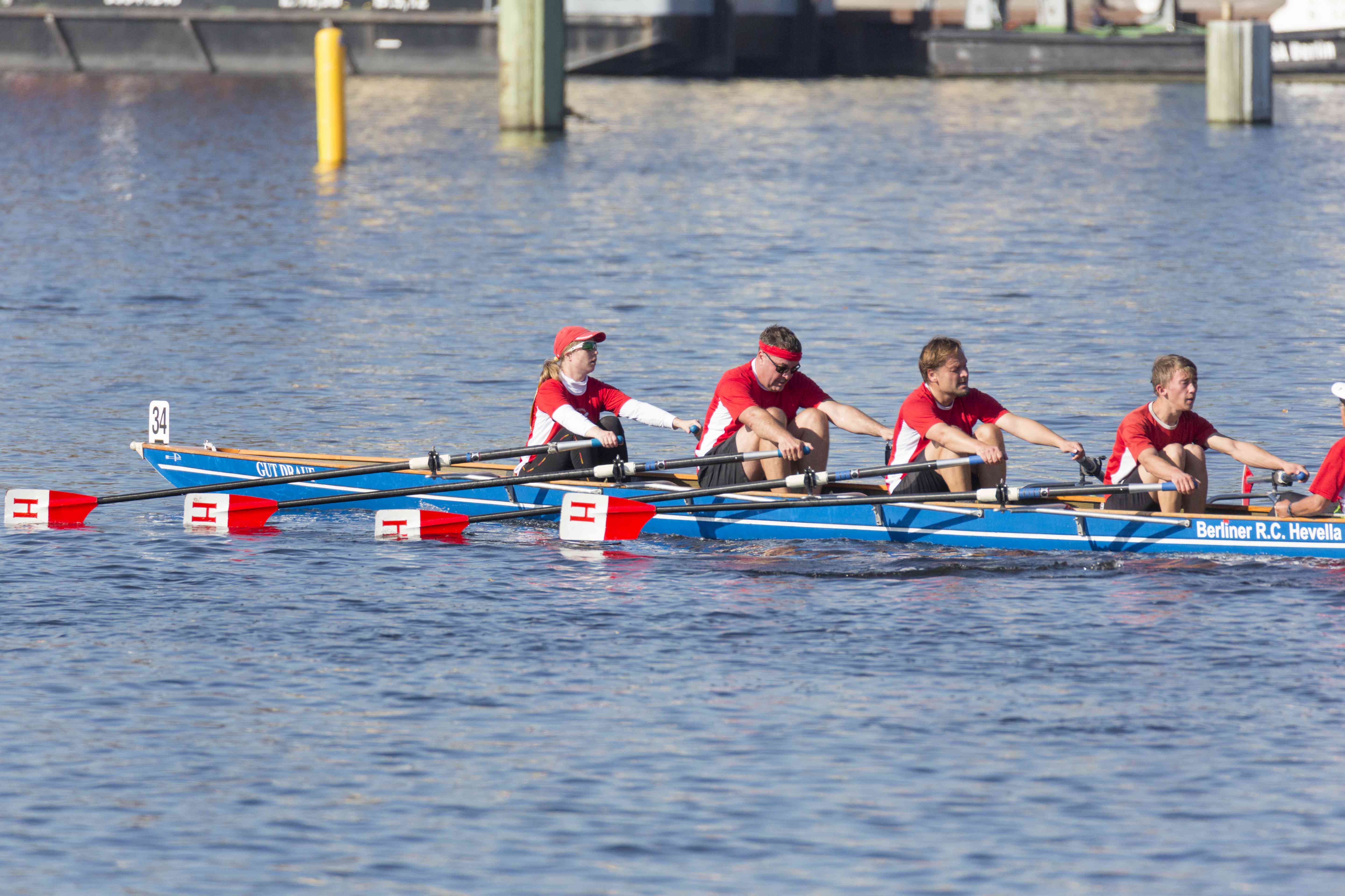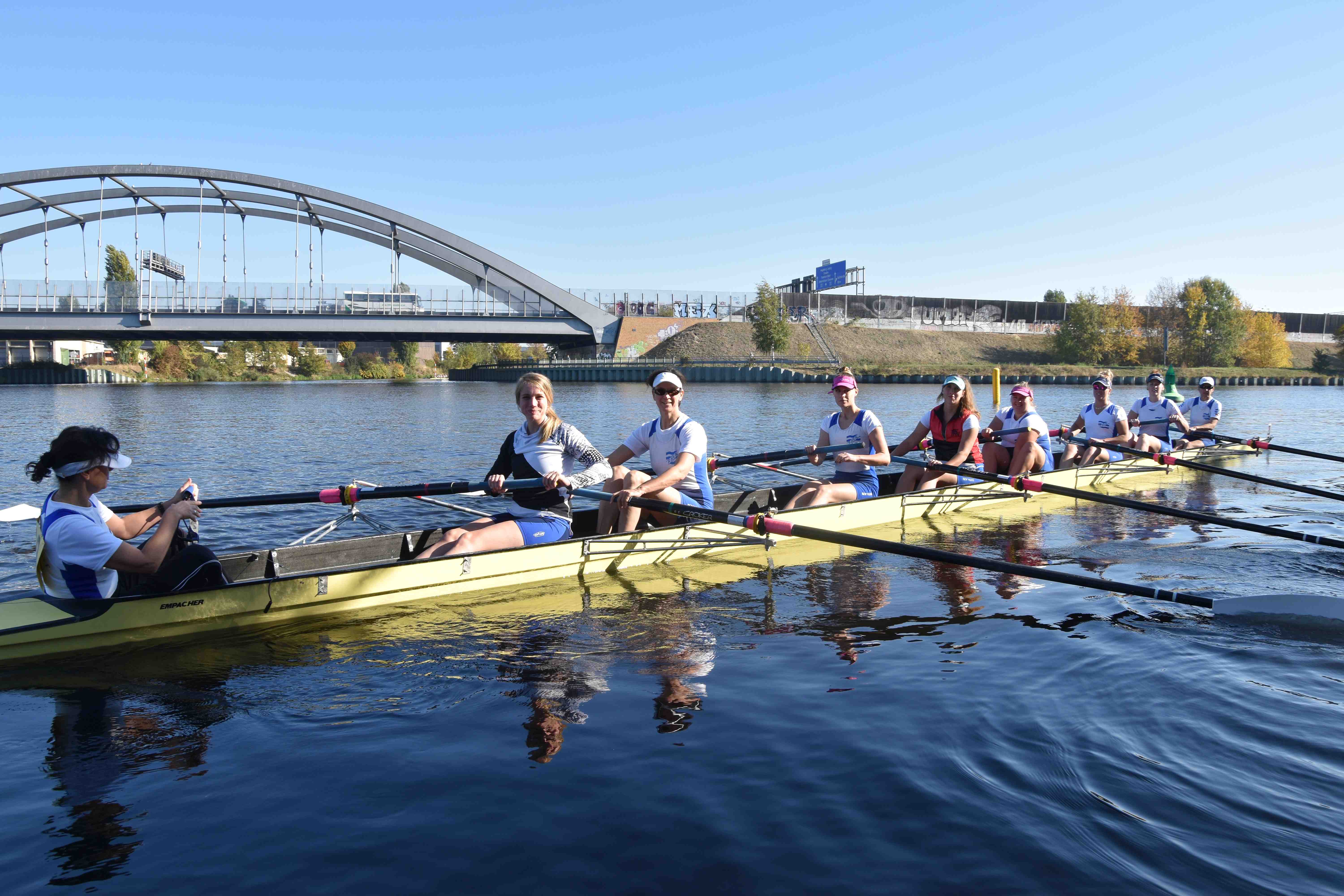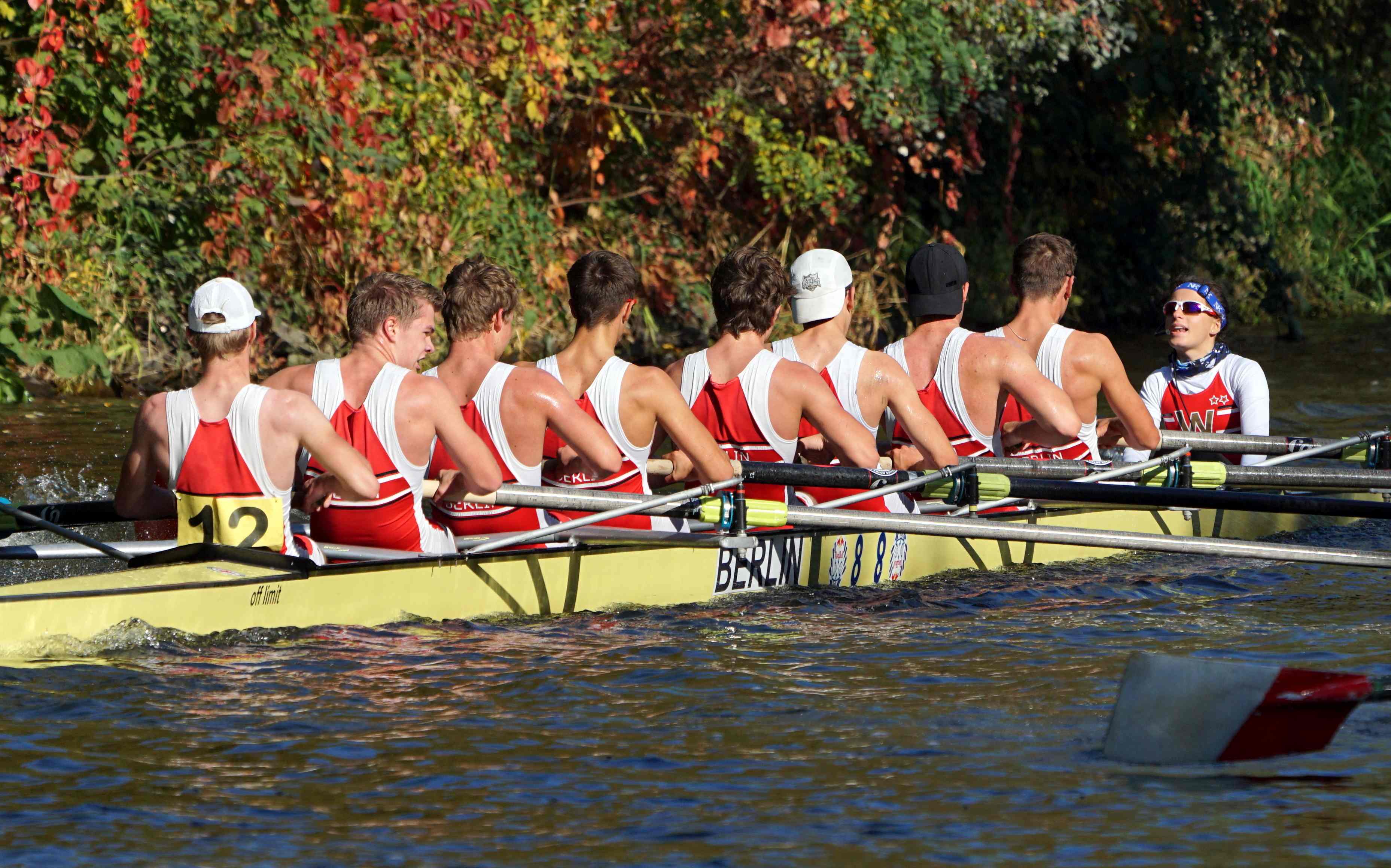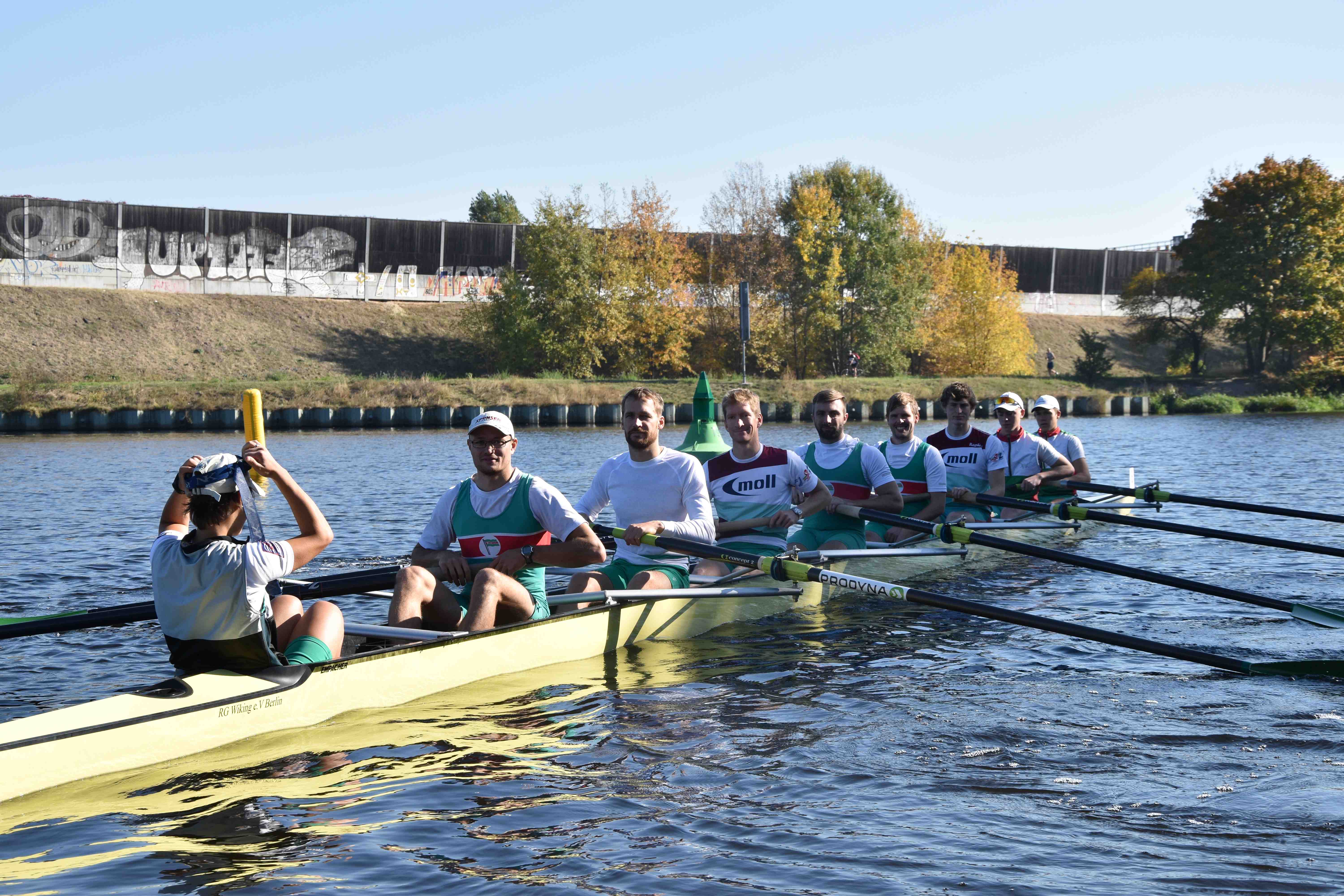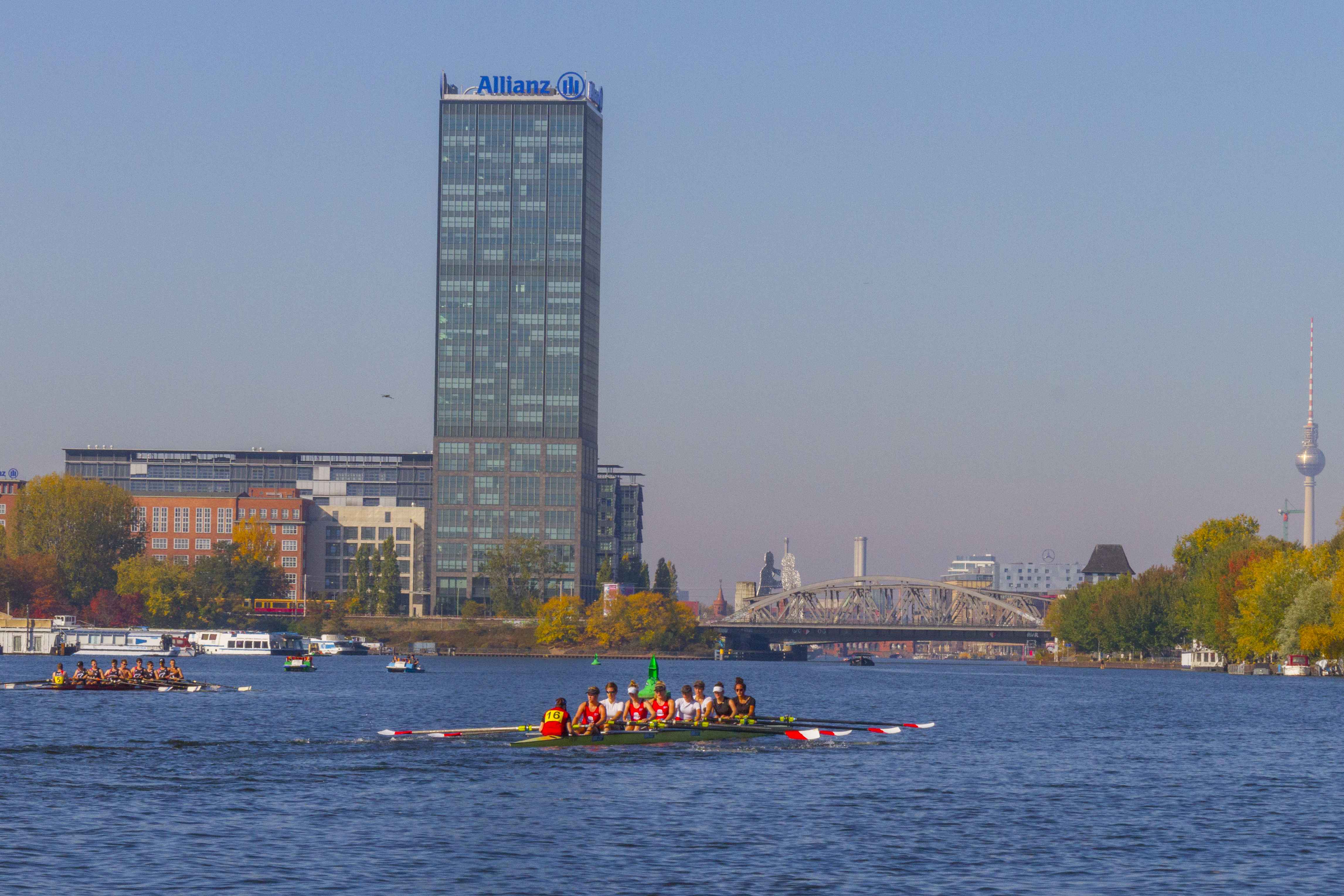 Mit warm anziehen war auch am Samstag für die Ruderer nix. Bei supersonnigem Herbstwetter ging es zunächst um den Sieg auf der langen klassischen Distanz über 6,3 km. Dabei ging es von der Spreeinsel der Jugend entlang an der ehemaligen Berliner Mauer bis zum Britzer Hafen in Neukölln. An den Start gingen 22 Achtermannschaften, 7 Frauen Doppelvierer und 6 Gigdoppelvierer in der Club- und Inklussionsklasse. Dabei tankten Ruderer und Zuschauer zwischen Treptow und Neukölln mit viel nackter Haut die vermeintlich letzten Sonnenstrahlen im Oktober.