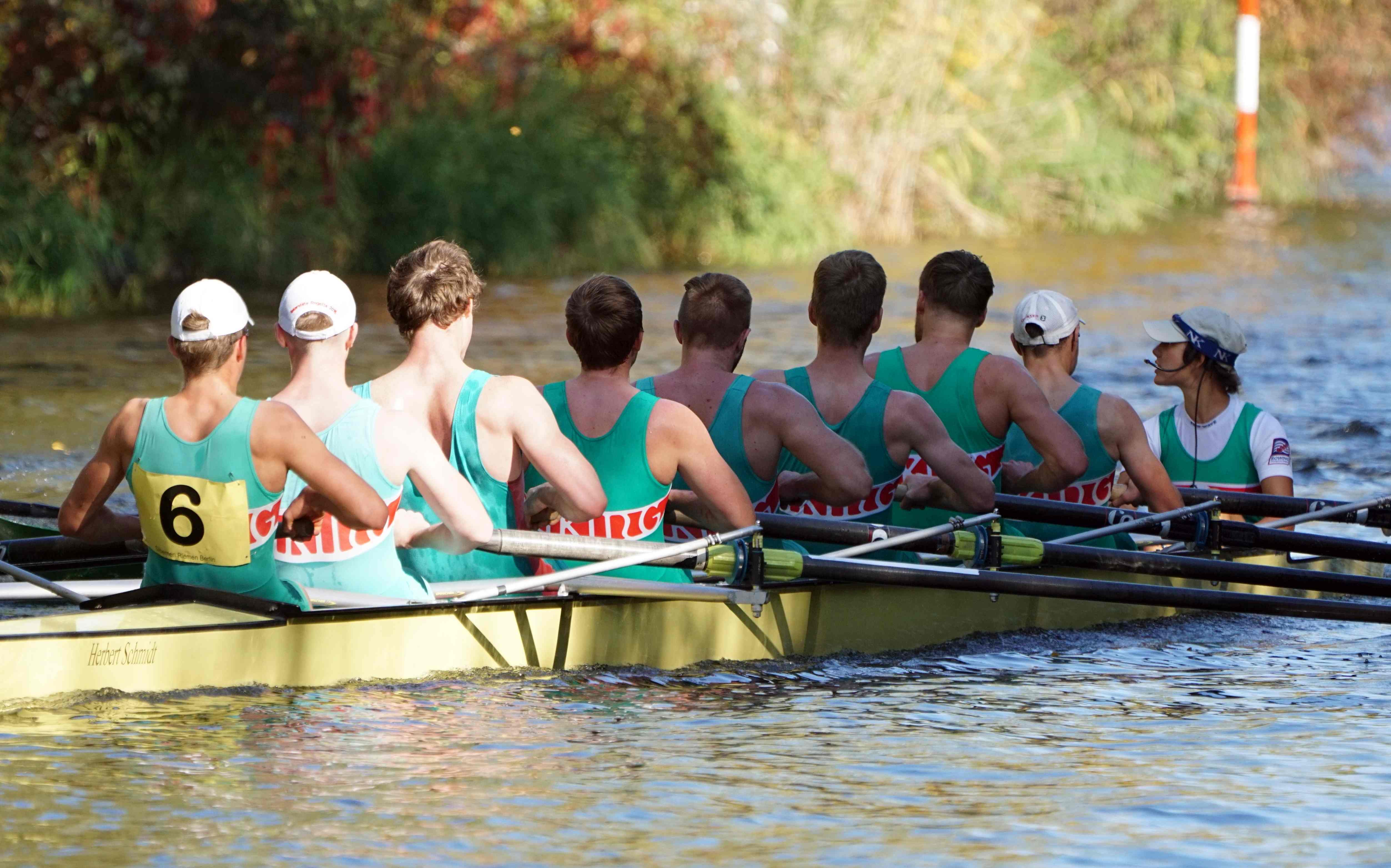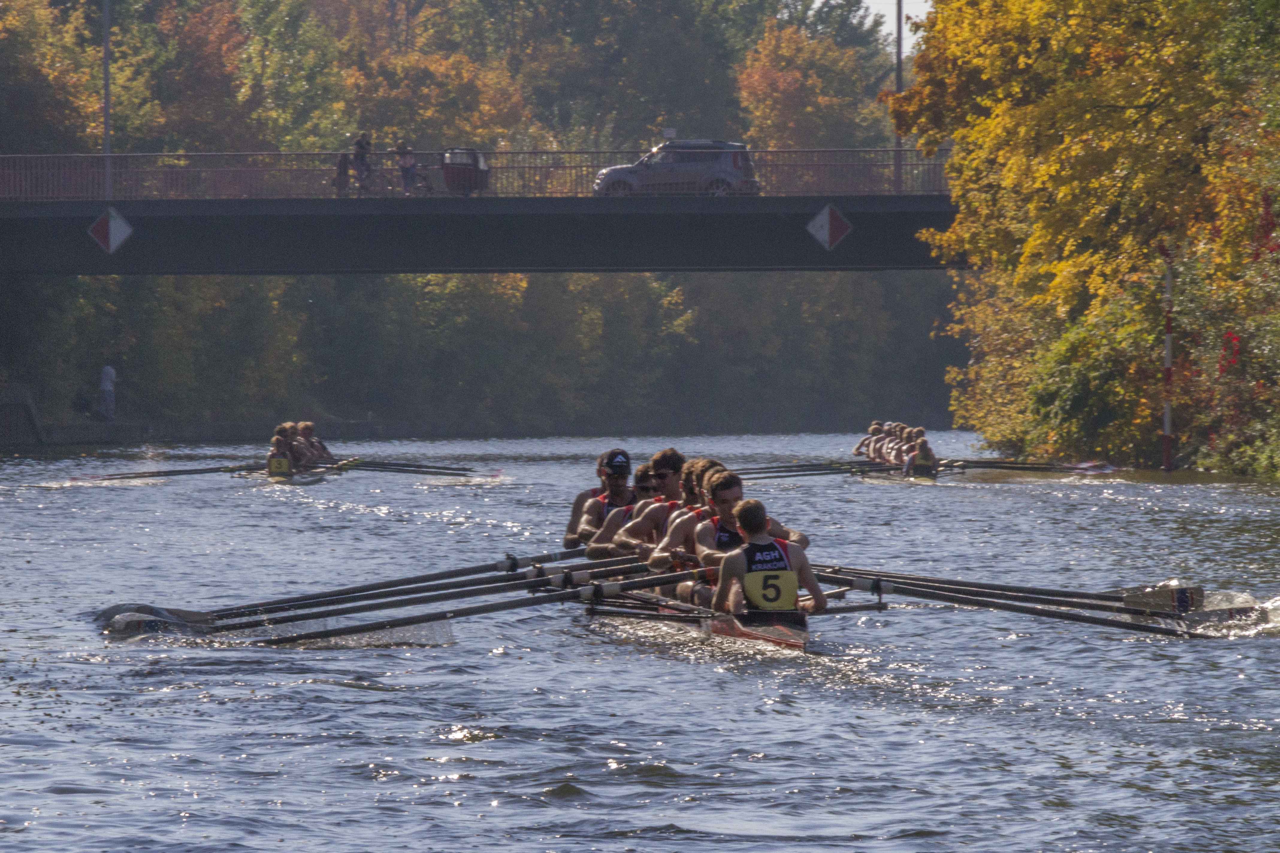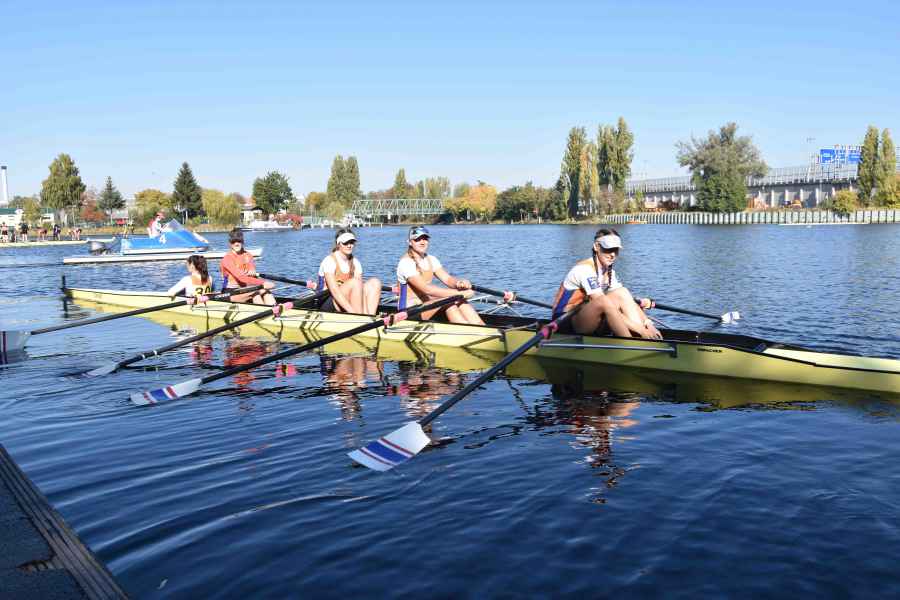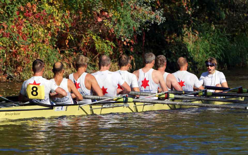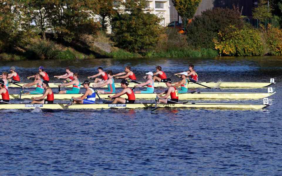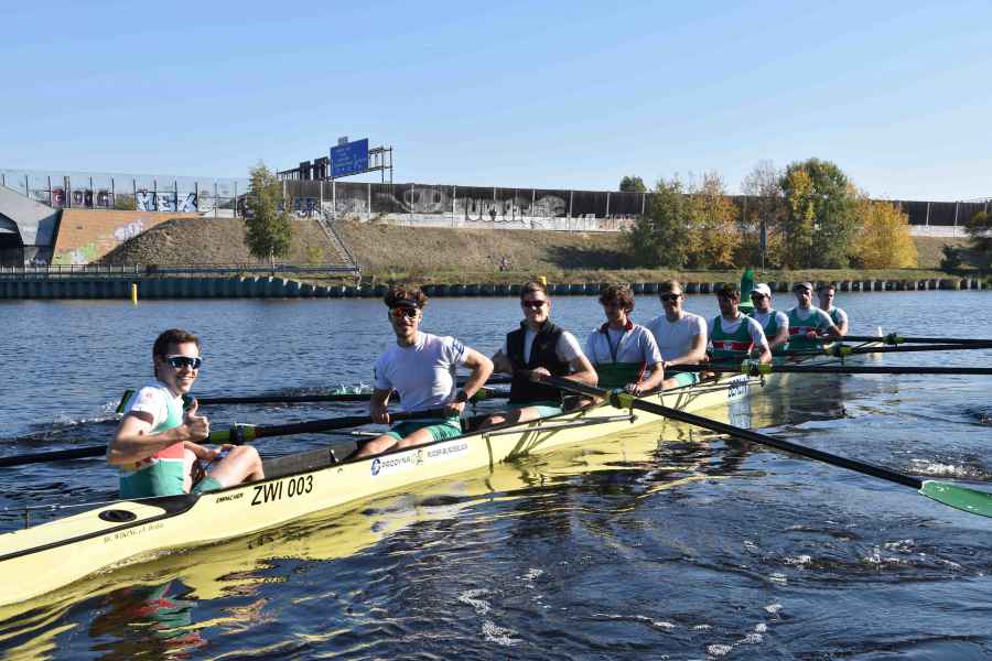 Mit warm anziehen war auch am Samstag für die Ruderer nix. Bei supersonnigem Herbstwetter ging es zunächst um den Sieg auf der langen klassischen Distanz über 6,3 km. Dabei ging es von der Spreeinsel der Jugend entlang an der ehemaligen Berliner Mauer bis zum Britzer Hafen in Neukölln. An den Start gingen 22 Achtermannschaften, 7 Frauen Doppelvierer und 6 Gigdoppelvierer in der Club- und Inklussionsklasse. Dabei tankten Ruderer und Zuschauer zwischen Treptow und Neukölln mit viel nackter Haut die vermeintlich letzten Sonnenstrahlen im Oktober.