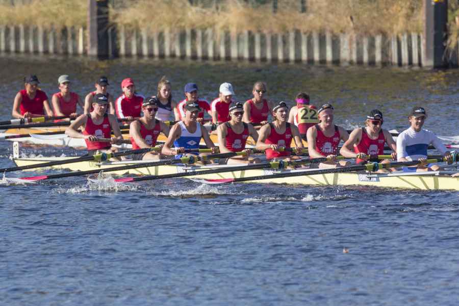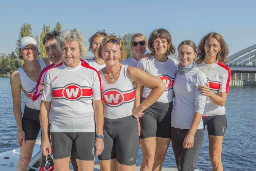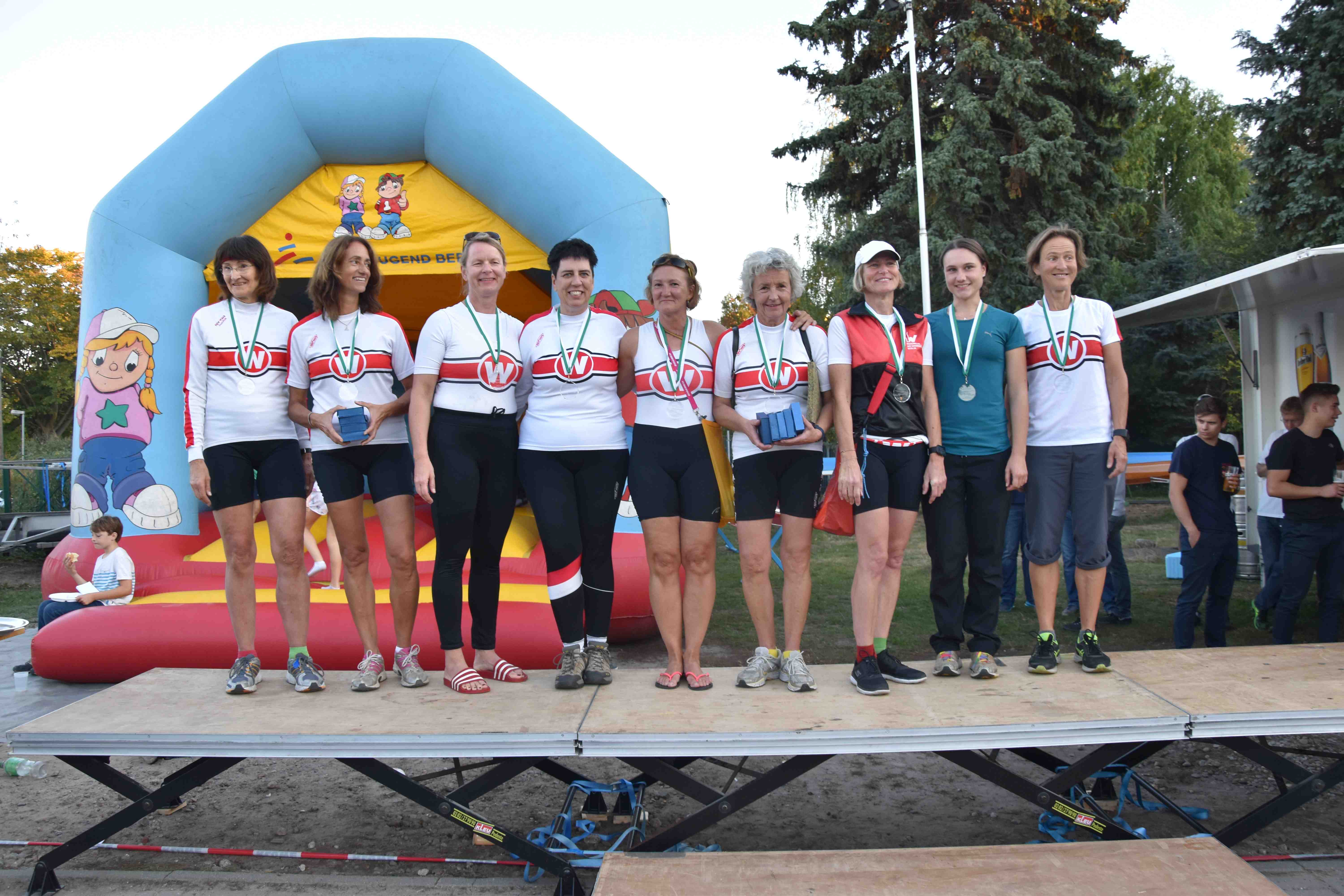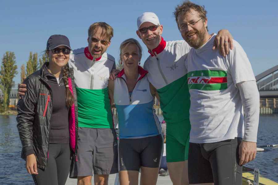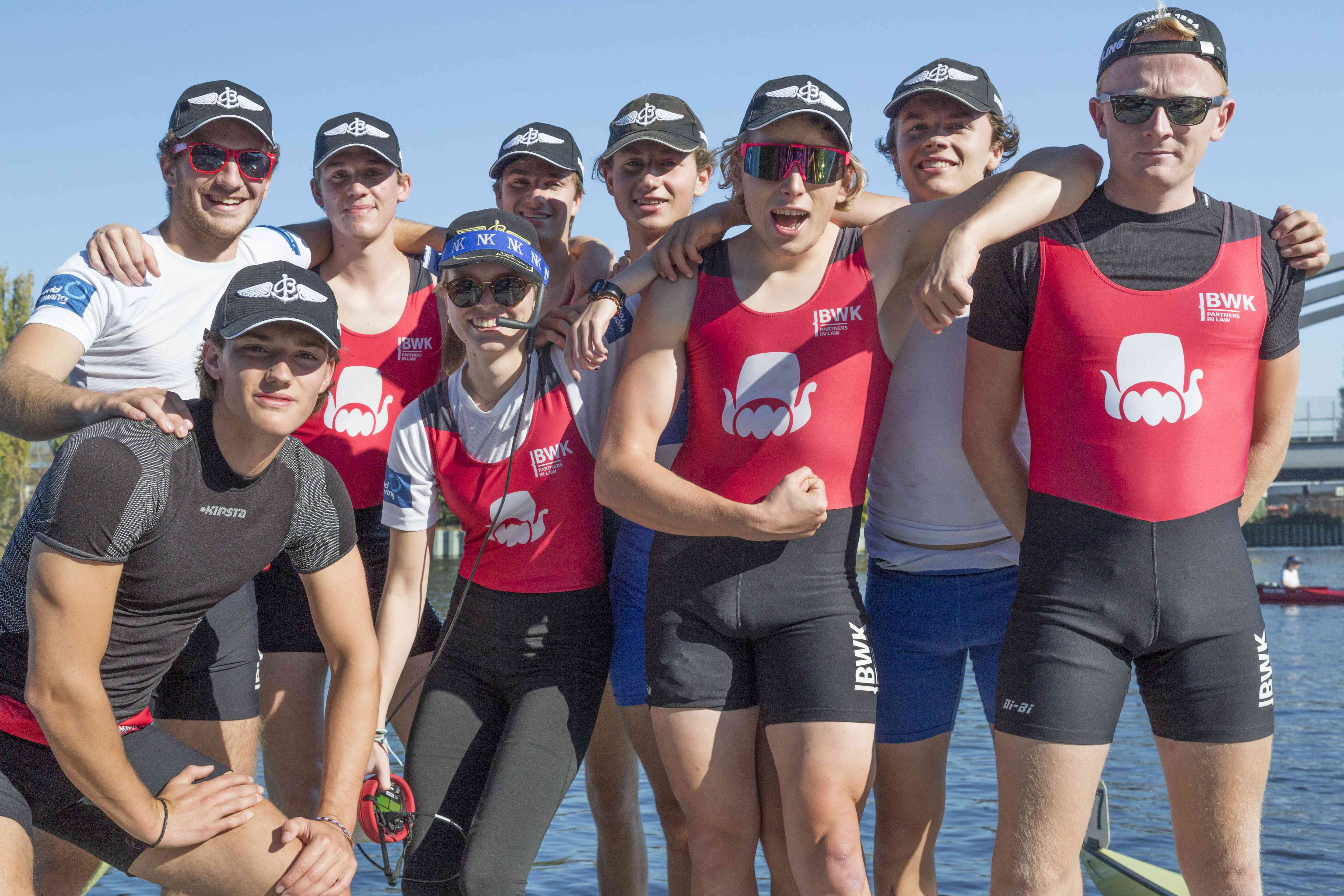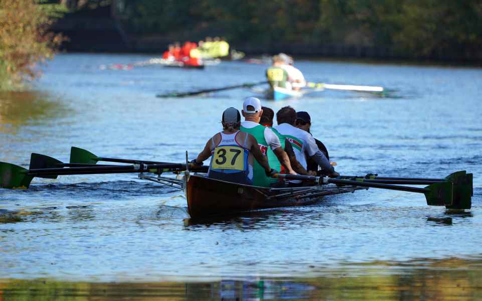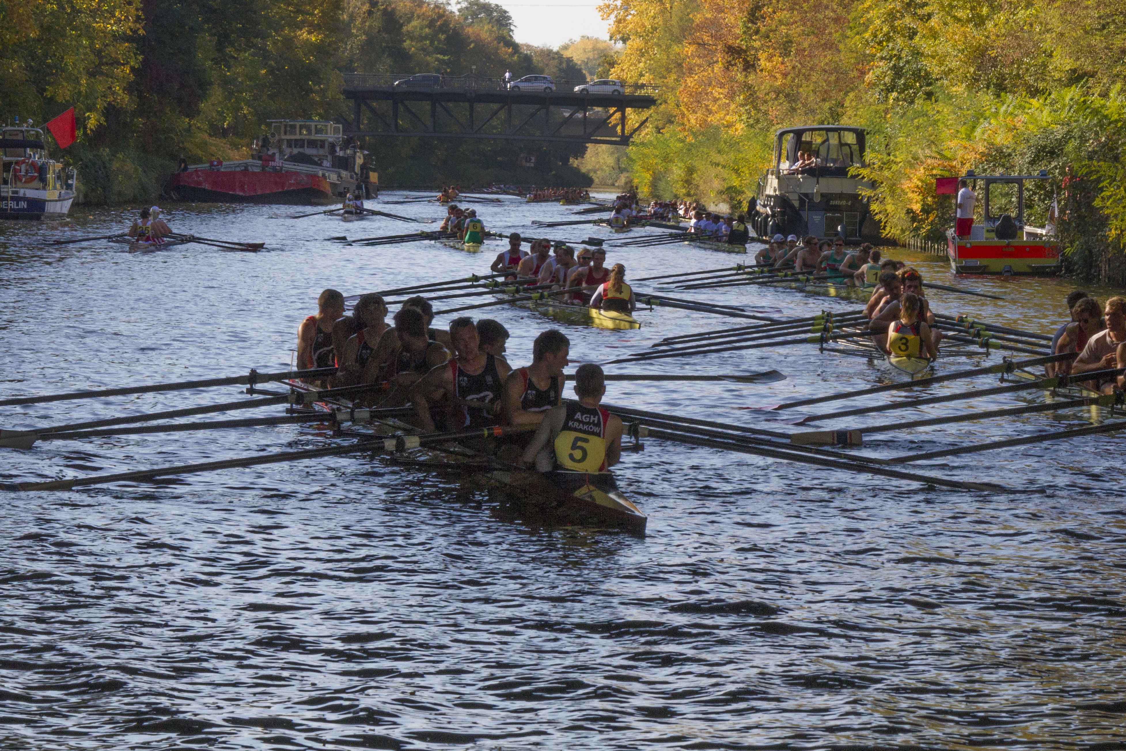 Mit warm anziehen war auch am Samstag für die Ruderer nix. Bei supersonnigem Herbstwetter ging es zunächst um den Sieg auf der langen klassischen Distanz über 6,3 km. Dabei ging es von der Spreeinsel der Jugend entlang an der ehemaligen Berliner Mauer bis zum Britzer Hafen in Neukölln. An den Start gingen 22 Achtermannschaften, 7 Frauen Doppelvierer und 6 Gigdoppelvierer in der Club- und Inklussionsklasse. Dabei tankten Ruderer und Zuschauer zwischen Treptow und Neukölln mit viel nackter Haut die vermeintlich letzten Sonnenstrahlen im Oktober.